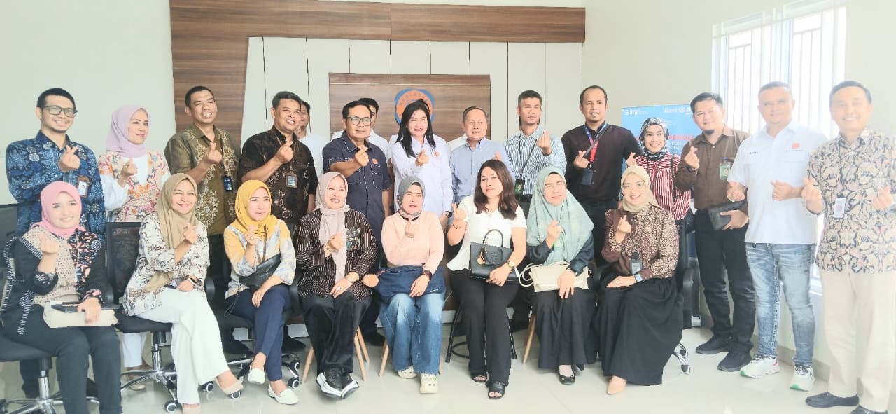 FOTO BERSAMA— Ketua DPD REI Sumbar Viona, Sekretaris DPD REI Sumbar Wiskarni Maisa dan pengurus lainnya usai acara foto bersama.