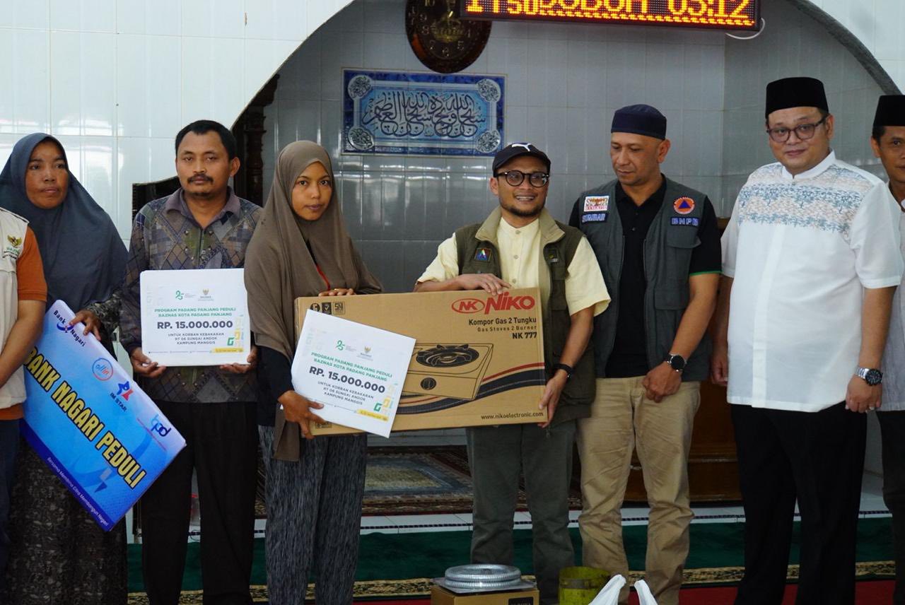 PDG. PANJANG, METRO— Kepedulian terhadap korban kebakaran di RT 6 Kelurahan Sungai Andok, Kelurahan Kampung Manggis, Kecamatan Padang Panjang Barat (PPB) terus berlanjut.  Setelah sebelumnya Pemerintah Kota menyalurkan bantuan kebutuhan dasar, bantuan lanjutan kembali diberikan bersama Baznas dan Bank Nagari, Sabtu (21/2), di lokasi pengungsian sementara di Mas­jid Nurul Khairat.