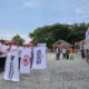 BANTUAN BANK NAGARI— Pimpinan Bank Nagari Cabang Sawahlunto, Ulfardhi dan Walikota Riyanda Putra dan lainnya memperagakan salam Ollin simbol brand produk Bank Nagari usai menyerahkan bantuan untuk Mushala Al Muhlisin, Desa Talago Gunung Kecamatan Barangin.