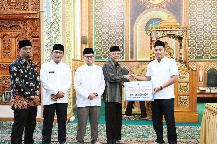 Dalam kesempatan tersebut, TSR Provinsi Sumbar turut menyerahkan bantuan infaq sebesar Rp25 juta. Bantuan itu diharapkan dapat dimanfaatkan untuk pemeliharaan bangunan, pengecatan, serta pengembangan area parkir masjid.