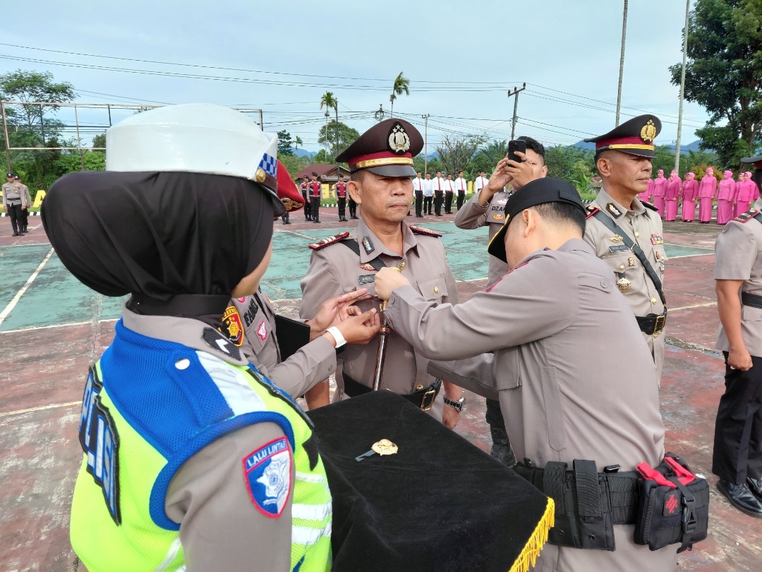 Upacara dipimpin langsung Kapolres Solok Selatan, M. Faisal Perdana, serta dihadiri jajaran pejabat utama, perwira, bintara, dan Bhayangkari.