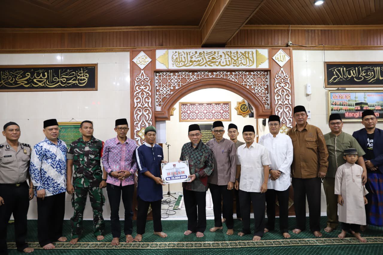BANTUAN HIBAH— Wawako Padang, Maigus Nasir memberikan bantuan hibah Rp25 juta dalam kegiatan Safari Subuh Ramadhan Pemko Padang di Mushalla Jamiatul Ikhwan, Jalan Jati Rumah Gadang, Kelurahan Jati, Kecamatan Padang Timur, Selasa (24/2).