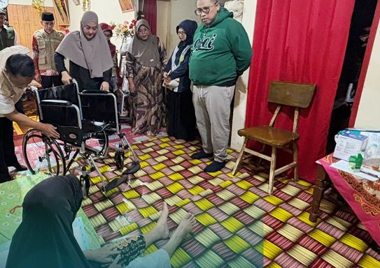PDG. PANJANG, METRO— Pemerintah Kota bersama Badan Amil Zakat Nasional (Baznas) Kota Pa­dang Panjang salurkan bantuan sosial berupa kursi roda dan uang tunai kepada dua warga lanjut usia (lansia), Kamis (26/2).  Bantuan tersebut diserahkan Wali Kota, Hendri Arnis didampingi Ketua TP PKK, Ny. Maria Feronika Hendri sebagai bentuk kepedulian dan respons atas kondisi kesehatan penerima.
