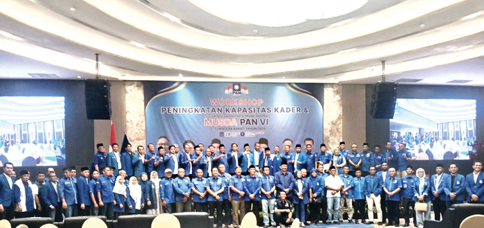 PADANG, METRO— Musyawarah Daerah (Musda) VI Partai Amanat Nasional (PAN) se-Sumatera Barat tahun 2026 digelar di Hotel Mercure Padang, Sabtu (28/2). Kegiatan ini menjadi momentum konsolidasi sekaligus penguatan struktur partai di tingkat kabupaten dan kota se-Sumbar.