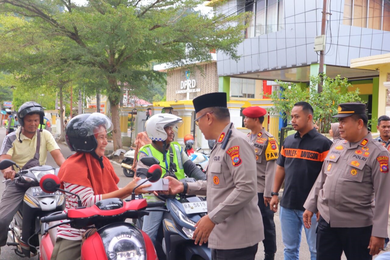 Kegiatan bertajuk “Indahnya Berbagi di Bulan yang Suci” tersebut dipusatkan di depan Mapolres Pesisir Selatan sejak pukul 16.45 WIB. Sebanyak 200 paket takjil dibagikan kepada para pengendara, pekerja harian, serta warga yang melintas menjelang waktu berbuka puasa.