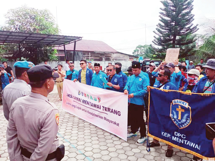 MENTAWAI, METRORatusan warga terdiri dari  Organisasi KNPI , GAMNI, GMNI, Ansor, PP, Pemuda Katolik, GAMKI bersama Warga Tuapejat melakukan aksi damai bertajuk Mentawai Terang di Kantor PLN Sipora Utara, Senin (2/3).